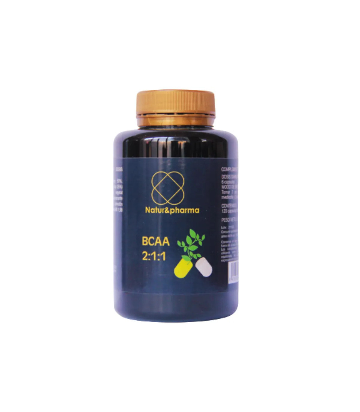 Natur&Pharma BCAA 2:1:1 reúne en 120 cápsulas un aporte equilibrado de BCAAs, con doble cantidad de L-Leucina frente a Isoleucina y Valina, optimizando su acción sobre el metabolismo muscular: