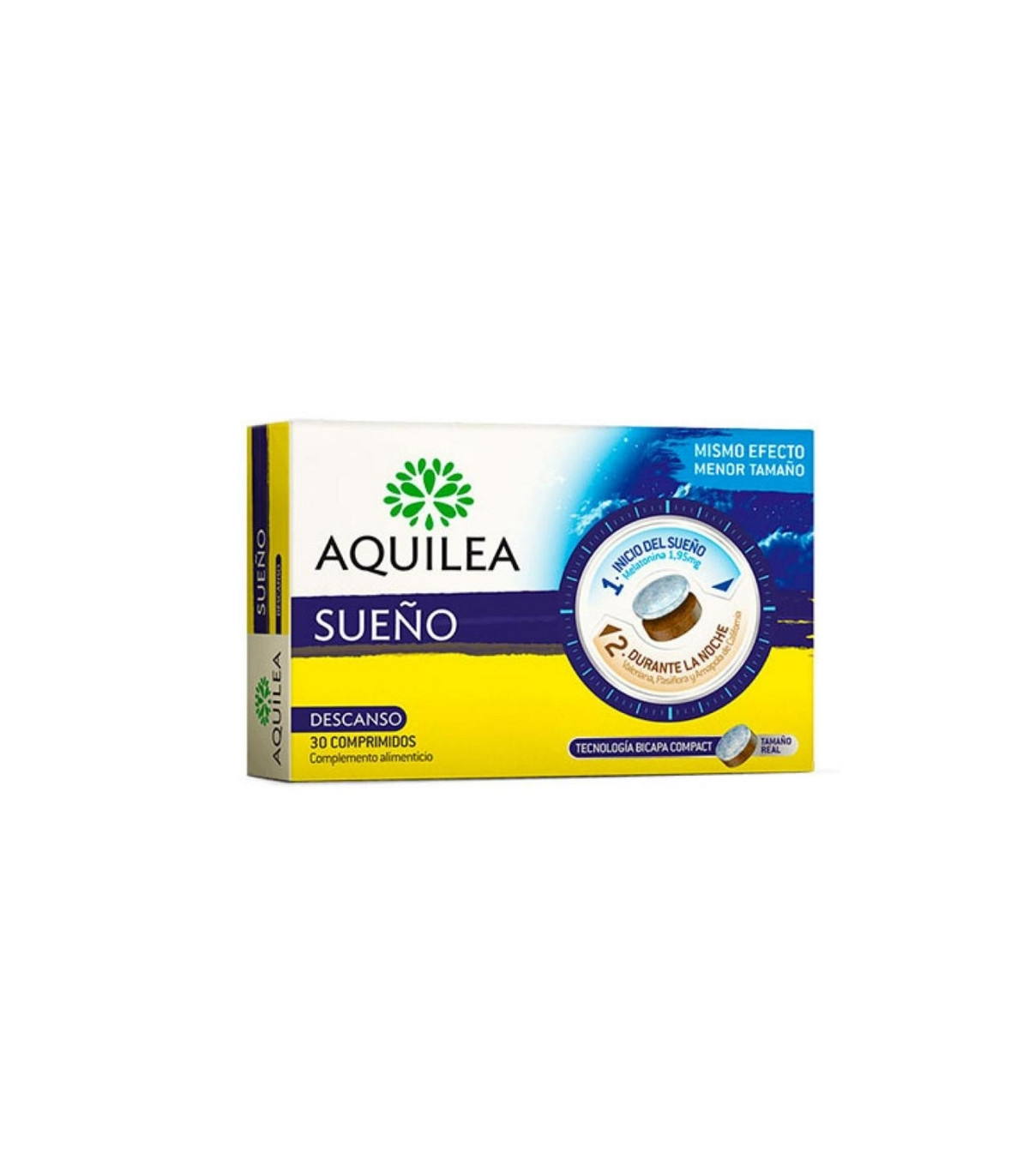Aquilea Sueño 1,95 mg 60 Comprimidos es un suplemento natural que ayuda a mejorar la calidad del sueño y reduce el estrés, proporcionando un descanso más profundo y reparador.