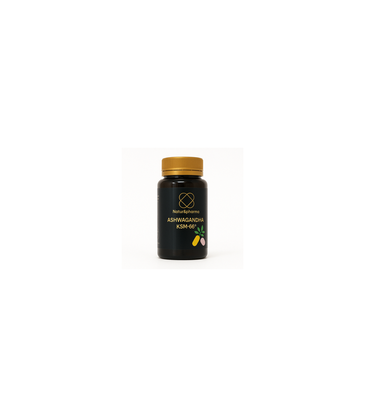 Natur&Pharma Ashwagandha KSM-66® es un complemento full-spectrum basado en un extracto de raíz pura obtenido mediante “química verde”, sin alcohol ni solventes agresivos. Cada cápsula contiene 600 mg de extracto patentado KSM-66® (Withania somnifera) estandarizado al 5 % de withanolides, los compuestos bioactivos responsables de sus efectos adaptogénicos.