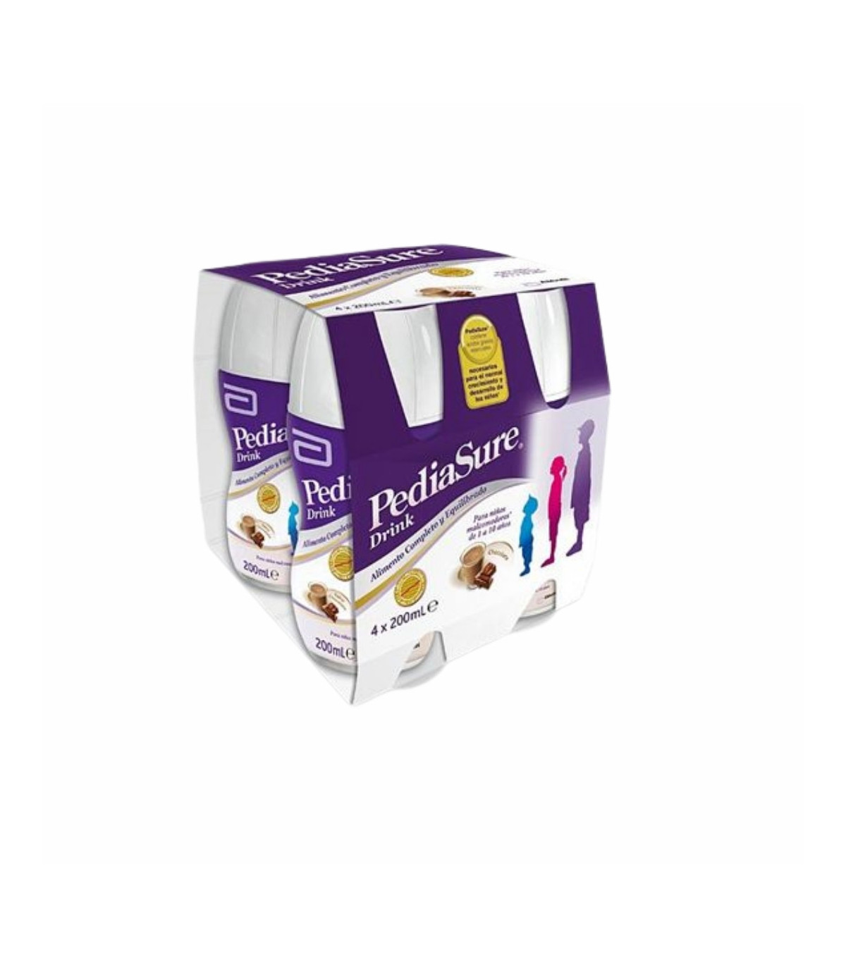 PediaSure Drink Chocolate 4x200ml es un complemento alimenticio en formato bebida, especialmente formulado para niños que necesitan un aporte nutricional extra para favorecer su correcto crecimiento y desarrollo.