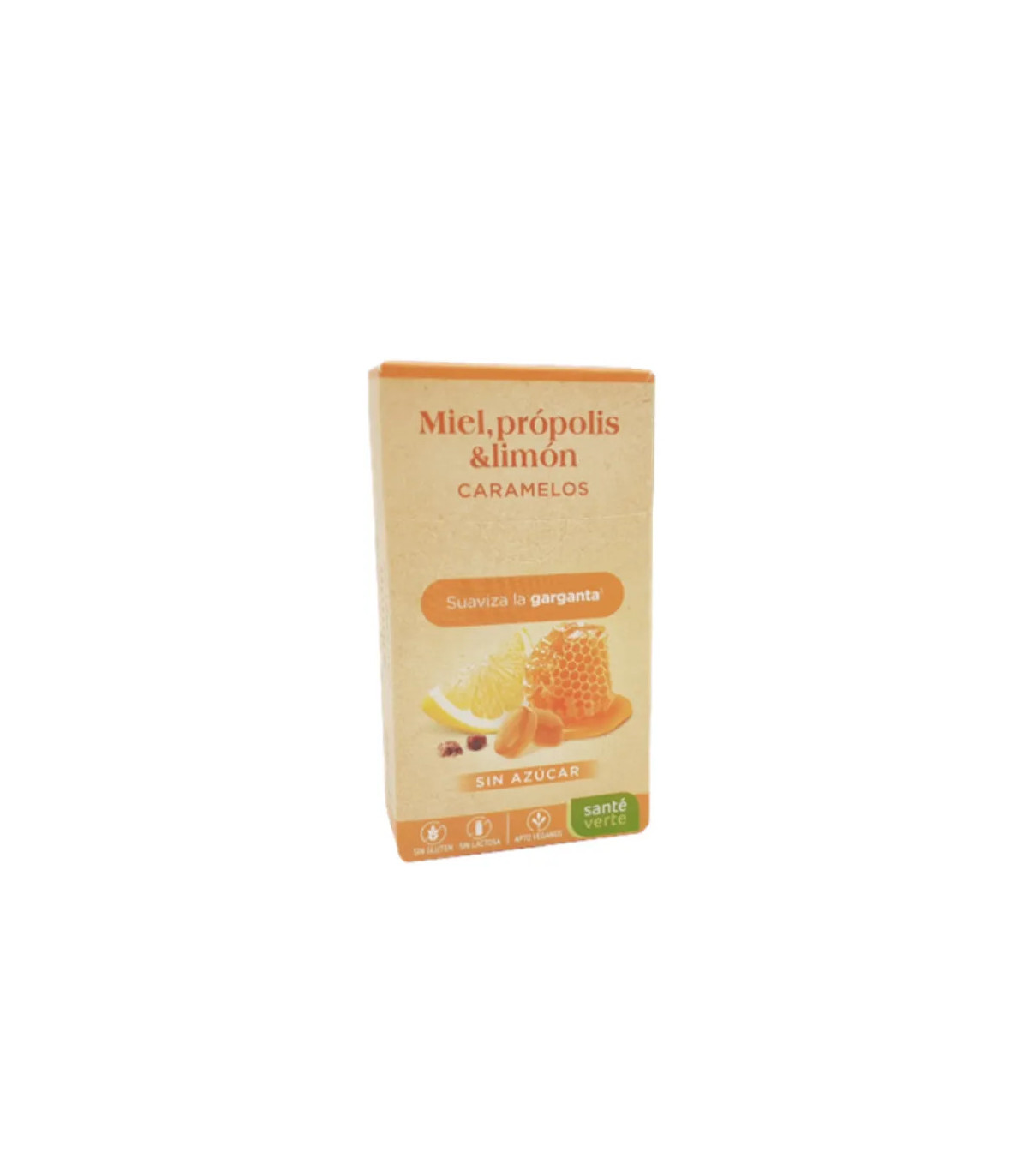Caramelos con miel, própolis y limón que suavizan la garganta, calman la irritación y ayudan a reforzar las defensas de forma natural.