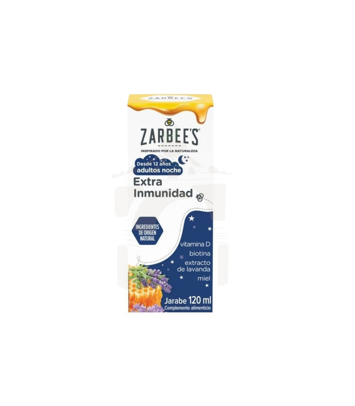 Zarbee's ExtraInmunidad Adultos Noche es un suplemento natural que fortalece el sistema inmunológico y promueve un sueño de calidad durante la noche.
