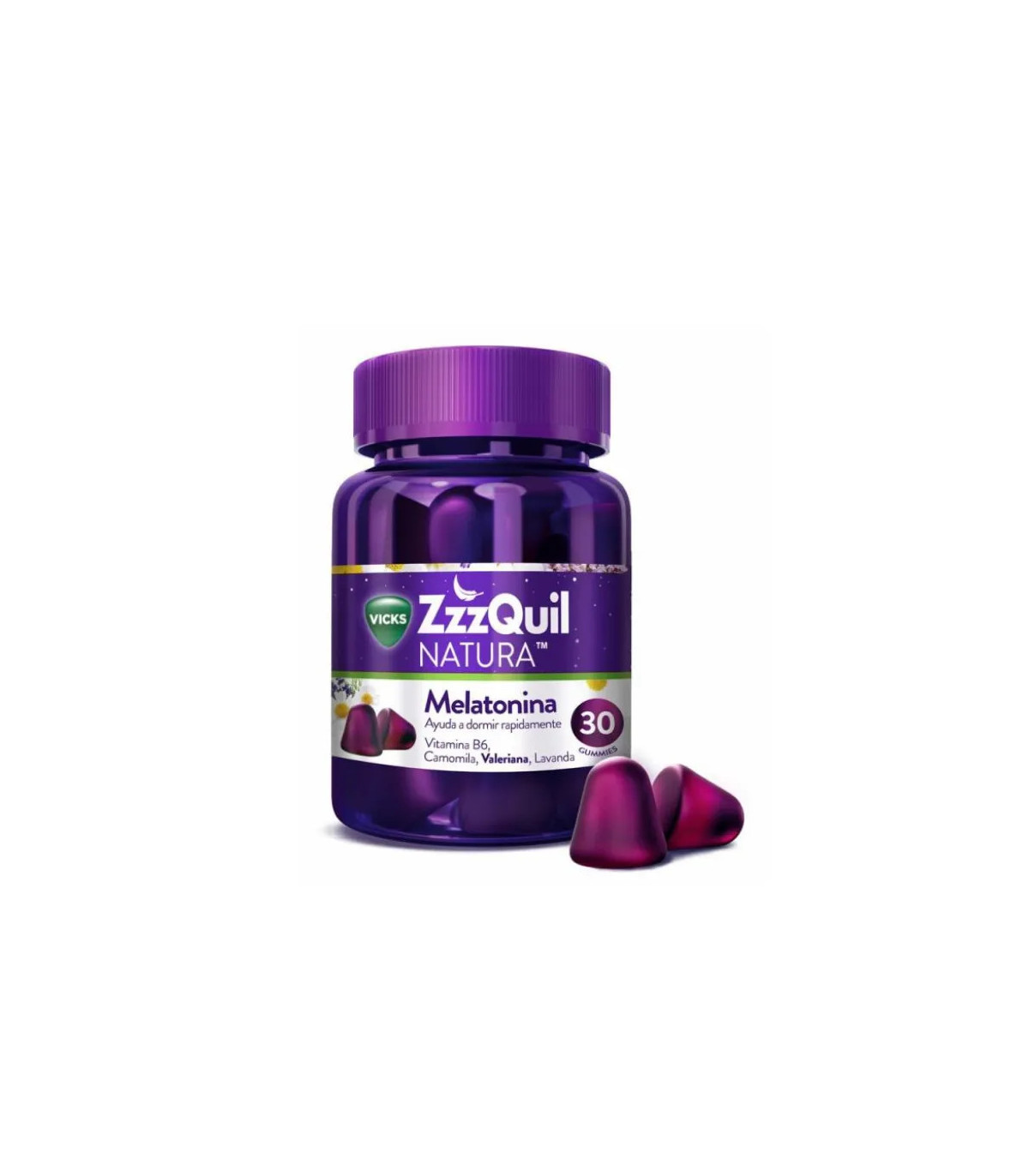 ZZZQUIL Melatonina es un suplemento en gomitas que contiene melatonina, una hormona natural que regula el ciclo del sueño. Está diseñado para ayudar a conciliar el sueño más rápidamente y mejorar la calidad del descanso, especialmente en casos de insomnio ocasional o cambios en el horario de sueño.