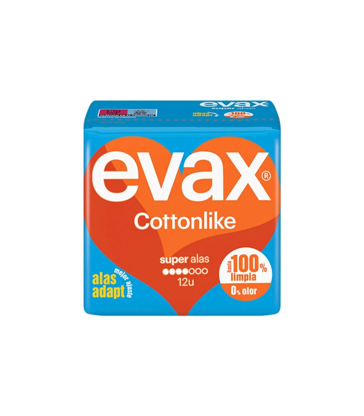 Las compresas Evax Super con alas ofrecen una protección eficaz en los días de flujo menstrual abundante. Con cobertura Cottonlike, suaves con la piel y de absorción rápida.