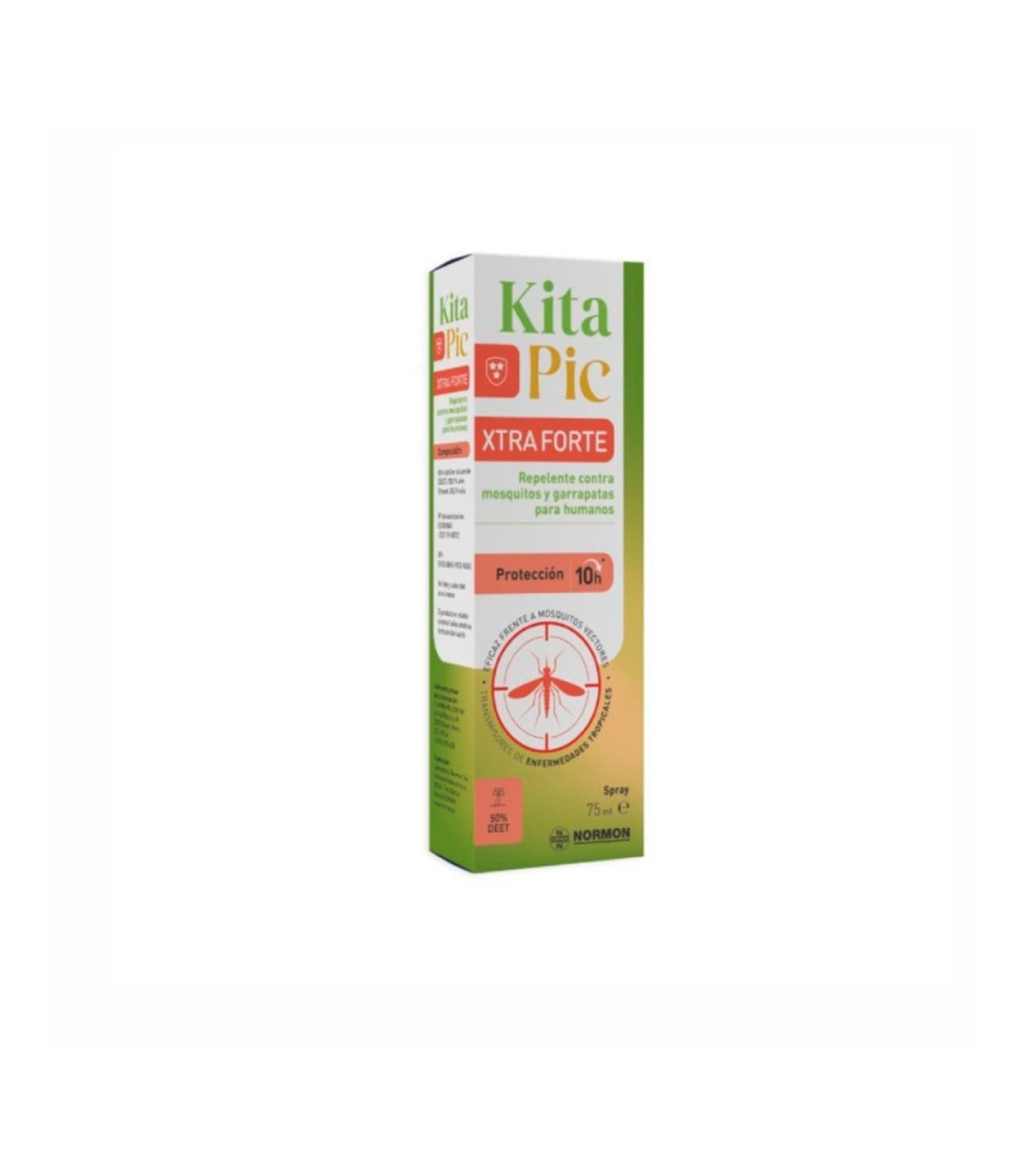 Kitapic Xtra Forte Spray 75ml es un repelente de insectos diseñado para ofrecer una protección extra fuerte y duradera frente a las picaduras de mosquitos, incluso en zonas tropicales y de alto riesgo donde la exposición a insectos es mayor. Su fórmula eficaz protege de las picaduras del mosquito tigre y otros insectos transmisores de enfermedades.