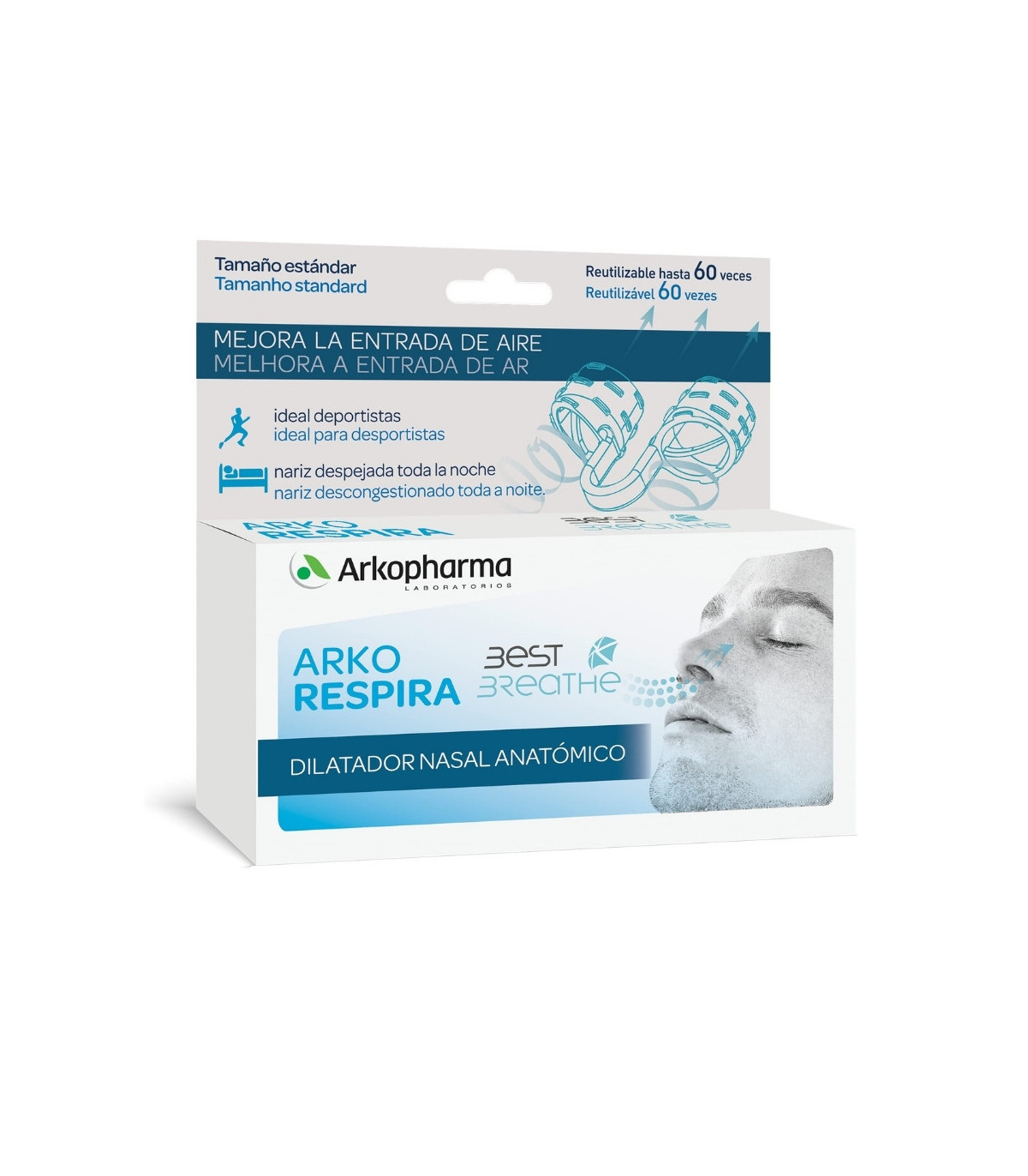 El Arkorespira Dilatador Nasal es un dispositivo práctico y discreto diseñado para mejorar el paso del aire por las vías nasales, facilitando la respiración tanto de día como de noche. Su diseño ergonómico actúa desde el interior de la nariz, manteniéndola abierta de forma suave y sin molestias.