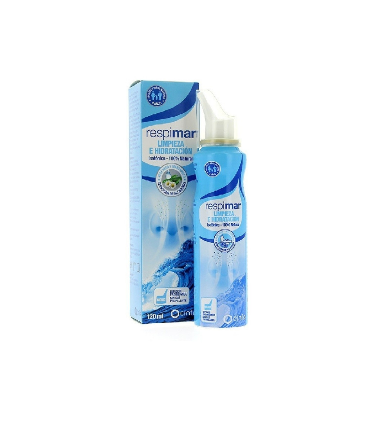 Respimar Limpieza e Hidratación 120 ml es una solución de agua de mar estéril que limpia, hidrata y descongestiona la nariz, favoreciendo la respiración natural.