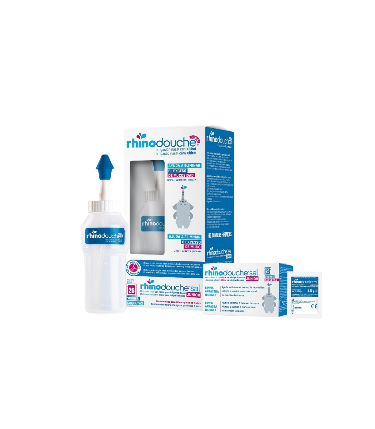 Rhinodouche Irrigador Nasal Junior 250 ml es un dispositivo diseñado para la limpieza suave y eficaz de las fosas nasales de bebés y niños.