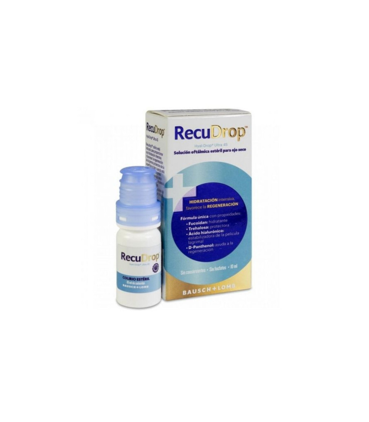 Recudrop es una solución oftálmica estéril, sin conservantes, diseñada para aliviar los síntomas del ojo seco y favorecer la reparación del epitelio ocular. Su fórmula contiene ácido hialurónico y otros agentes protectores que proporcionan hidratación prolongada y confort inmediato.