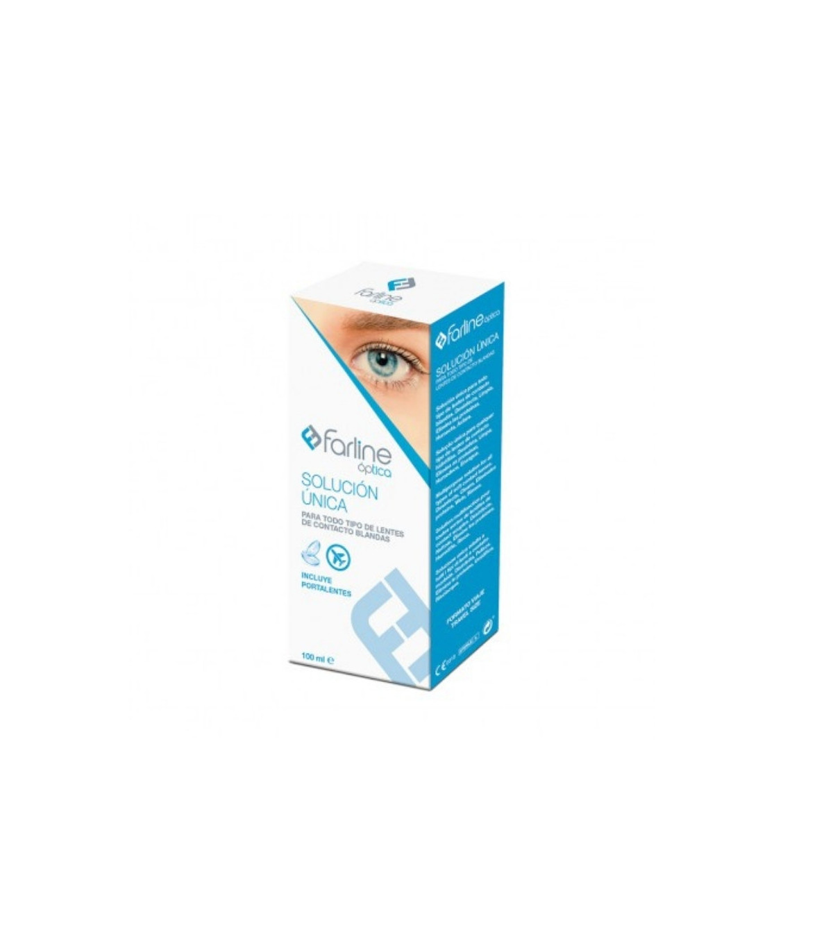 Farline Solución Única Optic 100 ml limpia, desinfecta, hidrata y conserva lentes de contacto blandas. Práctico formato de viaje.