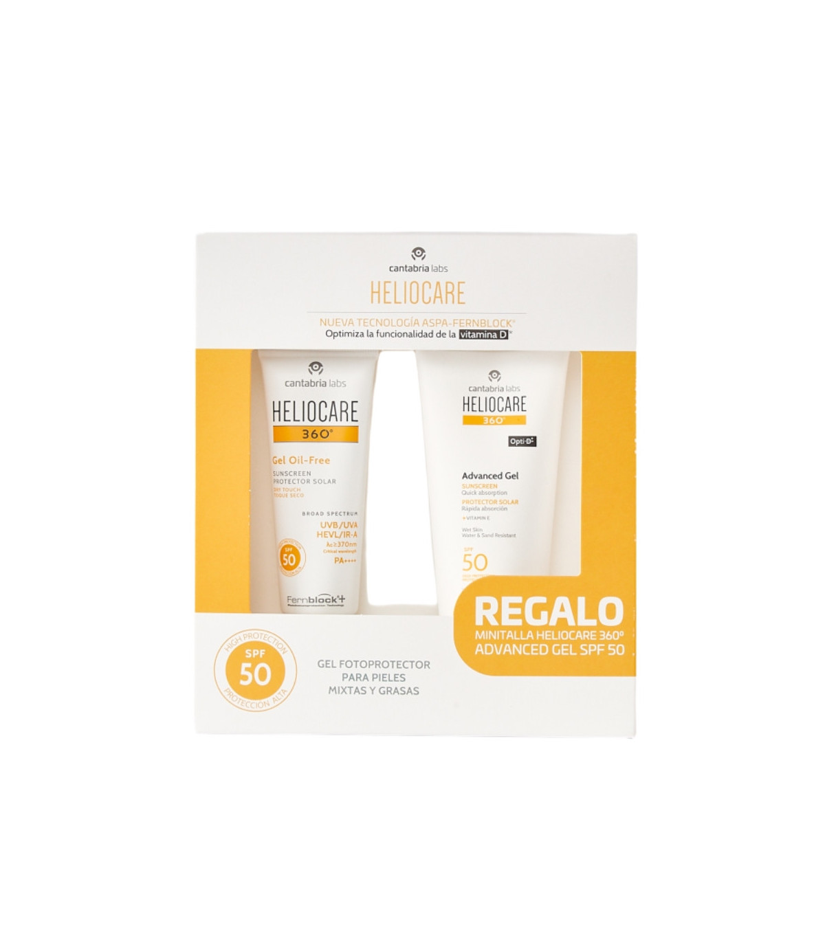 El Heliocare 360° Gel Oil-Free SPF 50 en estuche doble aporta dos frascos de 50 ml cada uno con un gel solar sin aceite ideal para pieles mixtas o grasas. Textura ultraligera, acabado mate y alta protección frente a UV, luz visible e infrarrojo.
