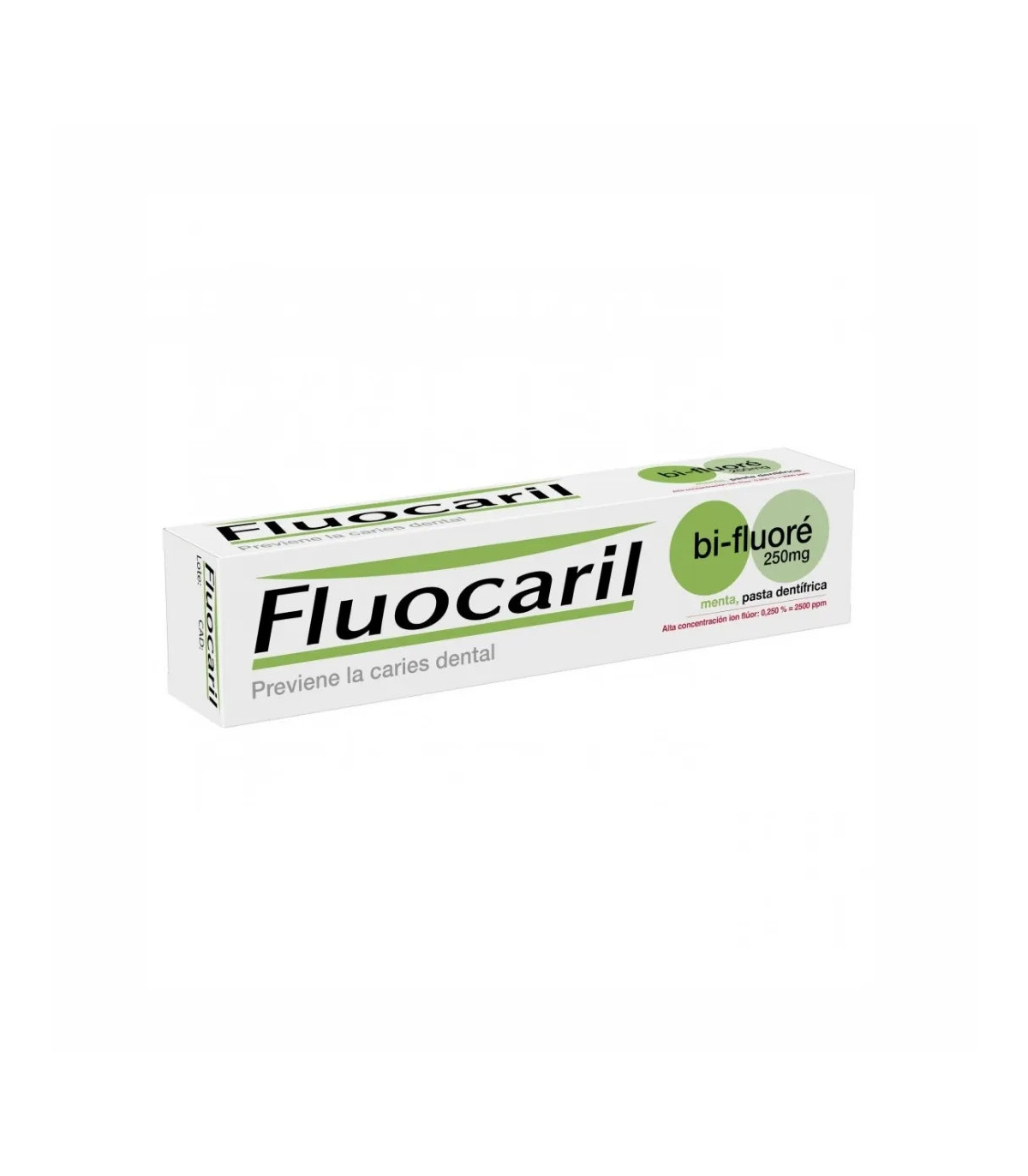 Fluocaril Bi-Fluoré 250 Pasta Dental 125 ml está formulada con una combinación única de dos sales de flúor (fluoruro de sodio y monofluorofosfato sódico) que actúan de forma complementaria para prevenir la caries, reforzar el esmalte y reducir la formación de placa.