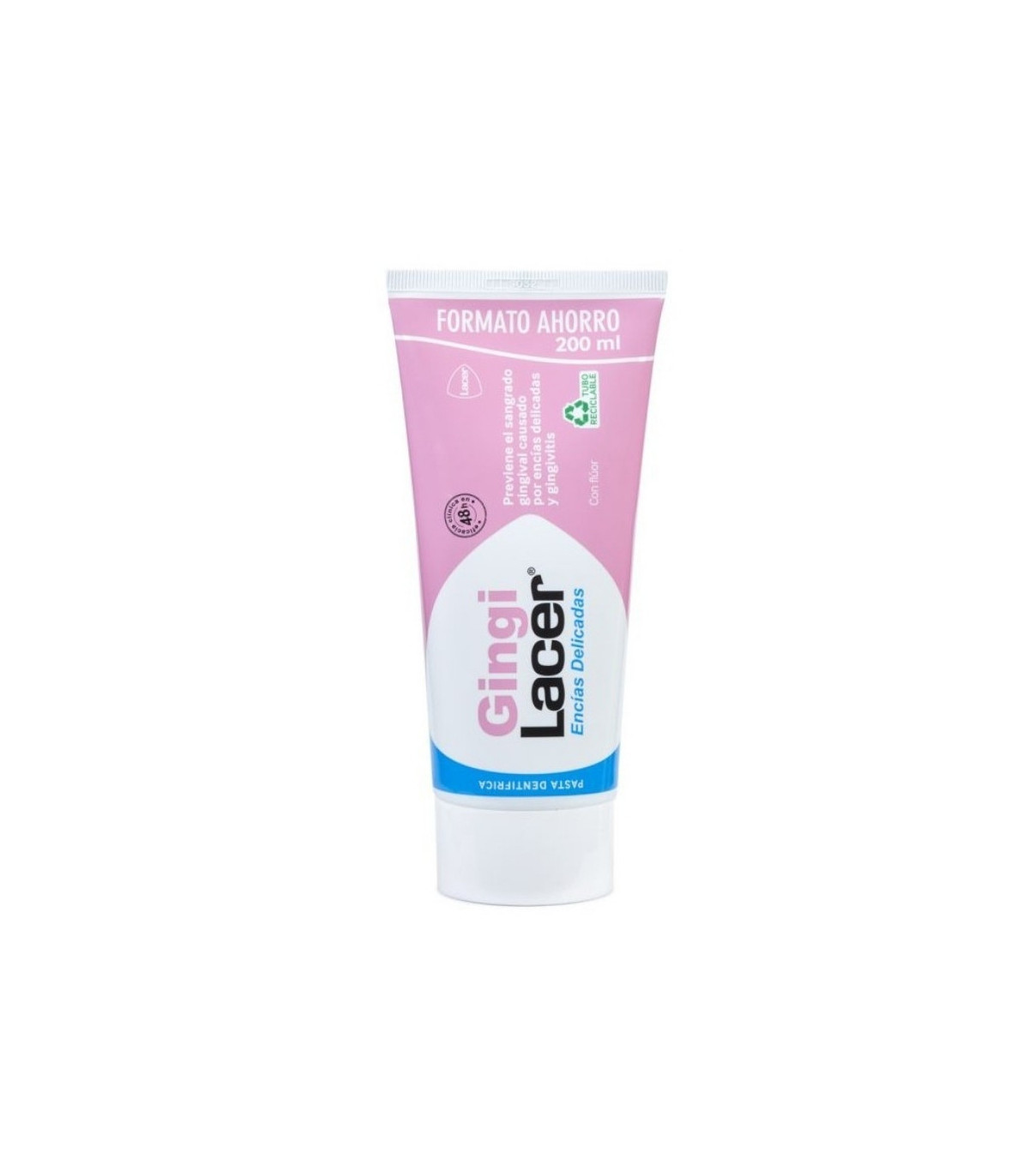 Gingilacer Pasta Dentífrica 200 ml está especialmente indicada para mantener unas encías sanas, prevenir el sangrado gingival y reducir la inflamación. Su fórmula contiene cloruro de zinc, que refuerza los tejidos gingivales, y fluoruro sódico, que fortalece el esmalte dental y ayuda a prevenir la caries.