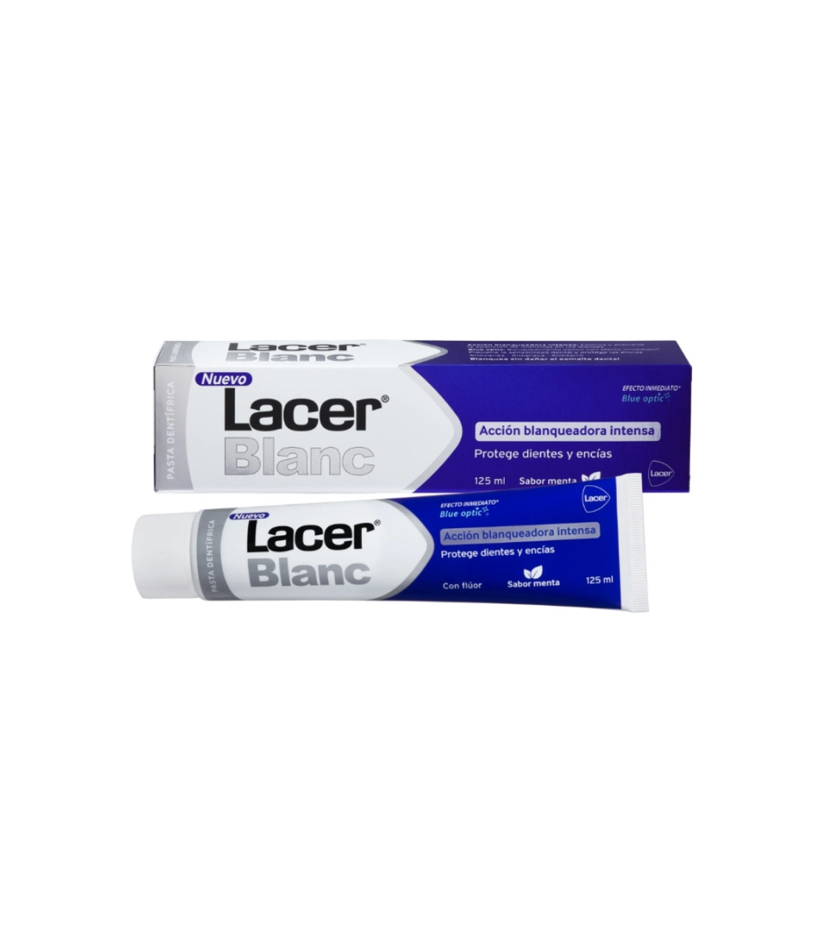 LacerBlanc Plus Menta Pasta Dental 125 ml está formulada para ofrecer un blanqueamiento dental eficaz y seguro gracias a su avanzada tecnología antimanchas, que actúa sobre las coloraciones externas sin dañar el esmalte. Ayuda a eliminar progresivamente las manchas causadas por café, té, vino o tabaco, recuperando el blanco natural de los dientes.