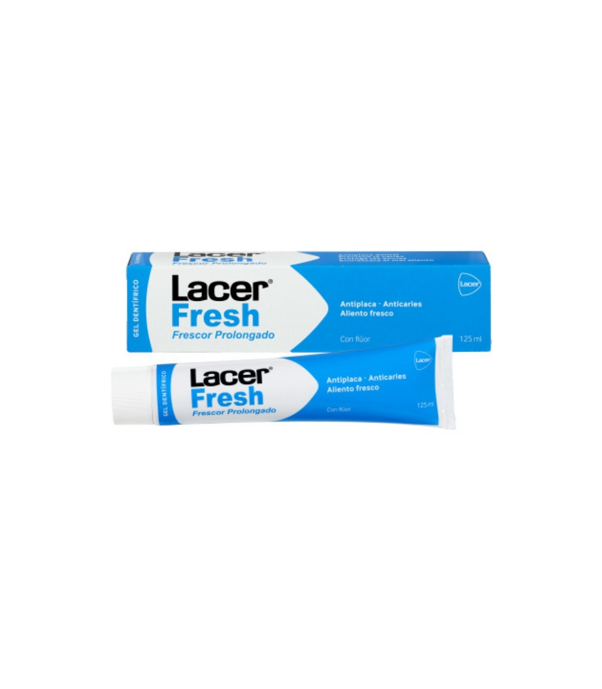 LacerFresh Gel Dentífrico 125 ml es una pasta dental en gel diseñada para proporcionar una limpieza profunda y un frescor intenso y duradero. Gracias a su fórmula con flúor y agentes refrescantes, combate eficazmente el mal aliento (halitosis), protege contra la formación de placa y caries, y deja una sensación de boca limpia durante horas.