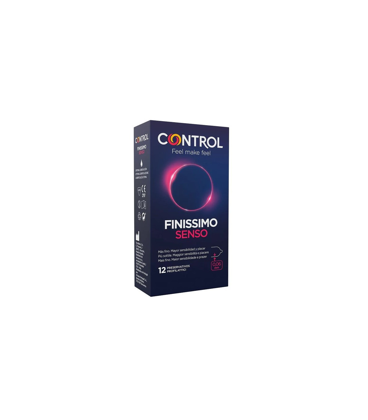 Control Senso Finissimo 12 uds son preservativos extrafinos de látex natural, pensados para quienes buscan una experiencia más intensa y natural. Su grosor reducido y forma anatómica proporcionan un ajuste cómodo y mayor sensibilidad.