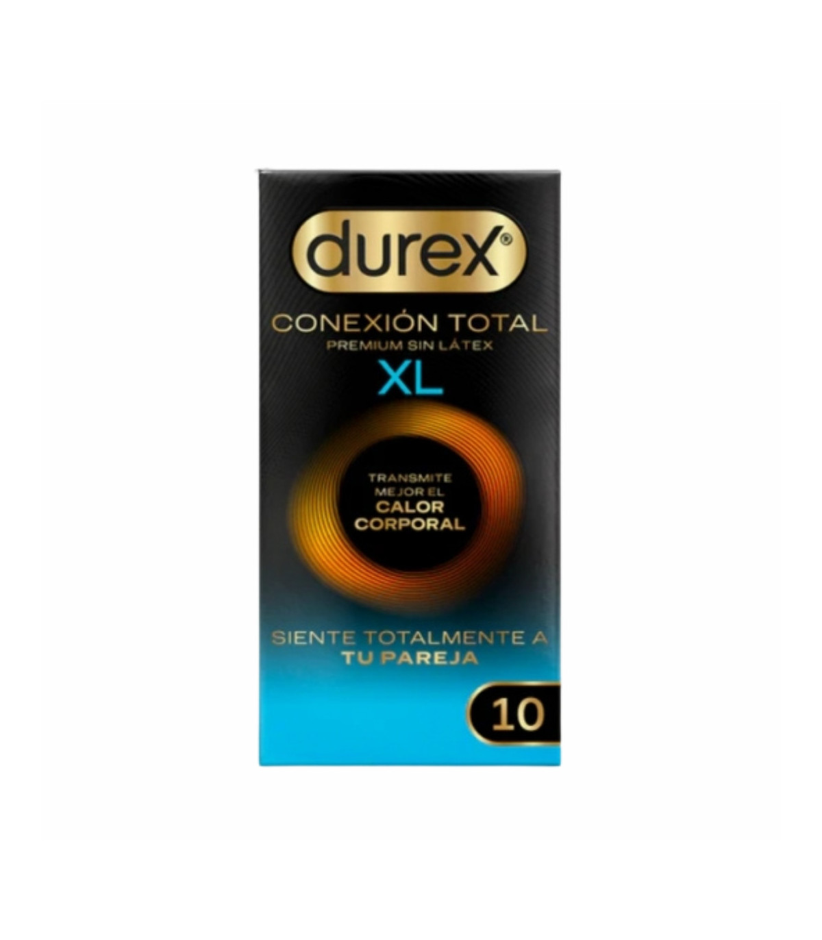 Durex Conexión Total XL (10 uds) combina una talla extra grande con una lámina ultrafina y lubricante adicional, para ofrecer una experiencia íntima que maximiza la proximidad y el confort. Fabricados en látex natural y diseñados con forma anatómica y depósito, estos preservativos son seguros, testados electrónicamente, y adecuados para pieles sensibles.