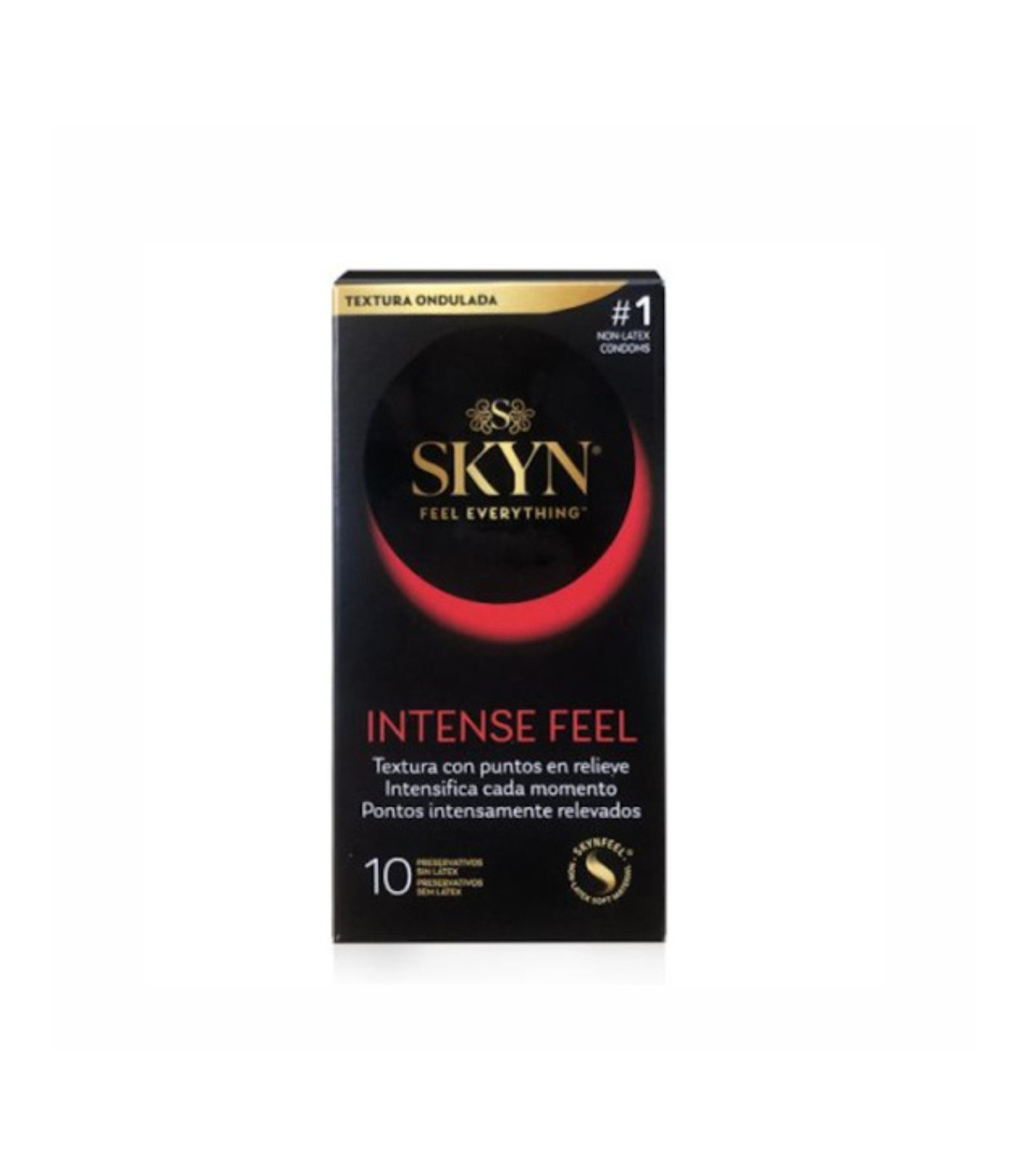 Preservativos sin látex de poliisopreno en pack de 10 unidades, ultradelgados (≈ 63 µm) y con textura “Intense Feel” de ondas y puntos intensamente elevados para maximizar la estimulación y el placer sin renunciar a la sensibilidad.
