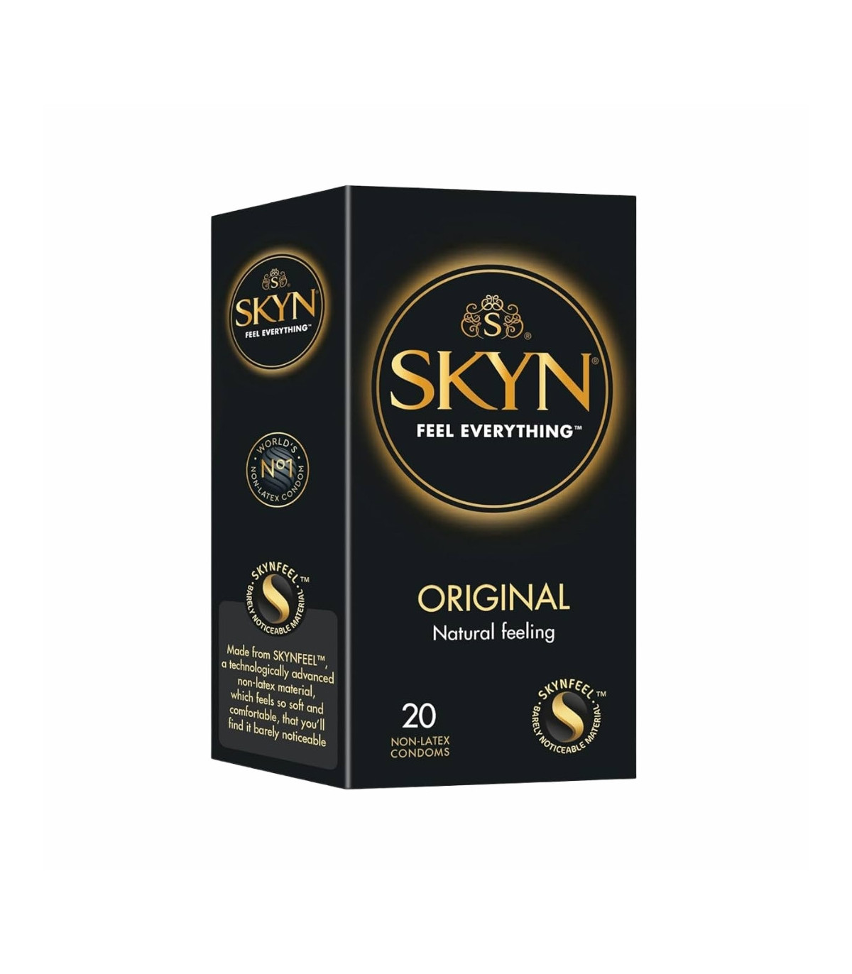 Pack de 10 preservativos SKYN® de poliisopreno sin látex, ultra suaves, con depósito y textura “control” ligera para un ajuste ceñido y extra sensibilidad, sin comprometer la protección.