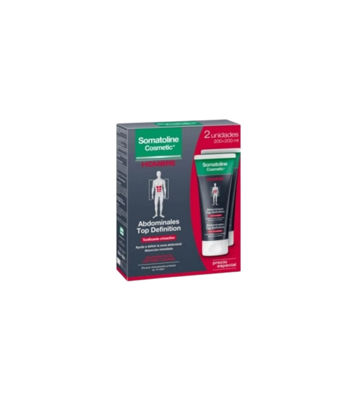 Somatoline Hombre Abdominales Duo 200 ml + 200 ml es un tratamiento cosmético reductor de acción intensiva diseñado para hombres. Su fórmula innovadora está especialmente indicada para reducir la grasa localizada en la zona abdominal, ayudando a remodelar y definir la silueta.