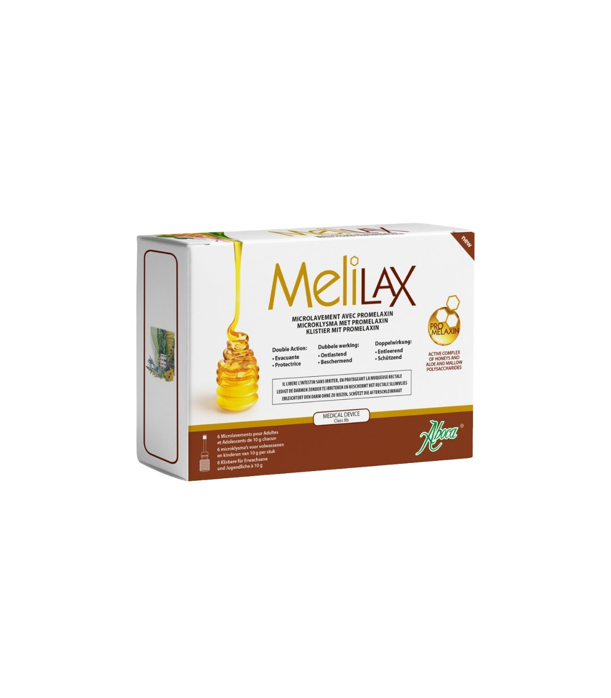 Aboca Melilax Adulto 10g 6 Unidades es un microenema innovador que combina eficacia evacuante con una acción protectora y calmante de la mucosa rectal. Gracias a su complejo Promelaxin® a base de miel y polisacáridos, facilita la evacuación fisiológica del intestino respetando su equilibrio natural.