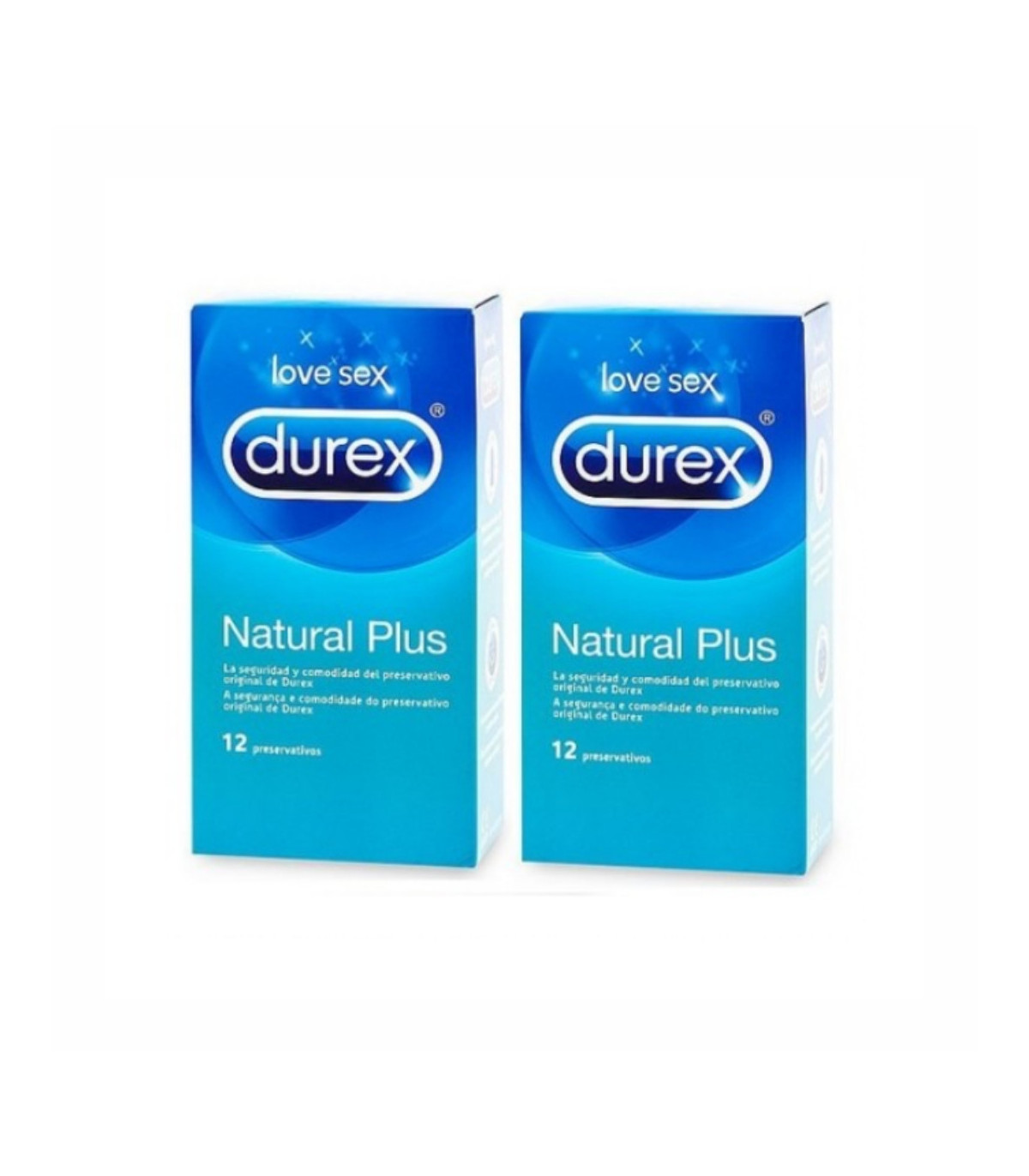 Preservativos Durex Natural Plus Duplo (2x12 uds), con forma anatómica Easy-On, extra lubricados y fabricados en látex natural. Máxima comodidad y protección.