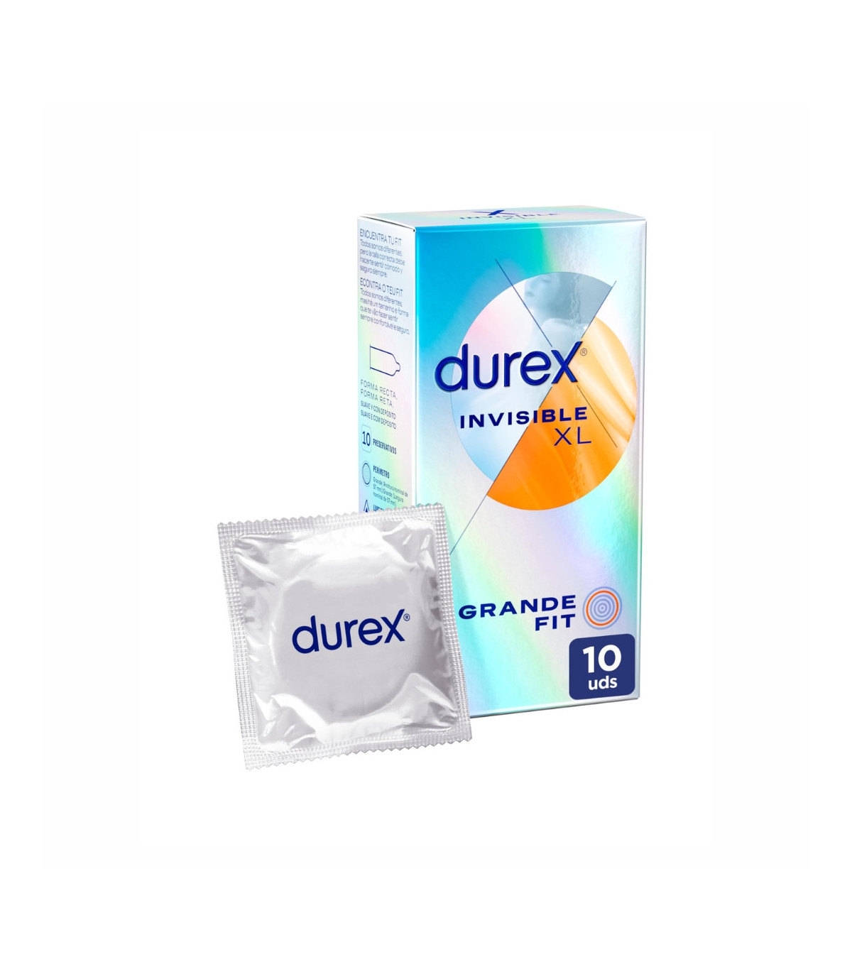 Durex Invisible XL 10 uds son preservativos ultra finos diseñados para ofrecer la máxima sensibilidad durante las relaciones, con un tamaño más amplio que los clásicos (57 mm de ancho nominal), ideal para quienes necesitan una talla XL.