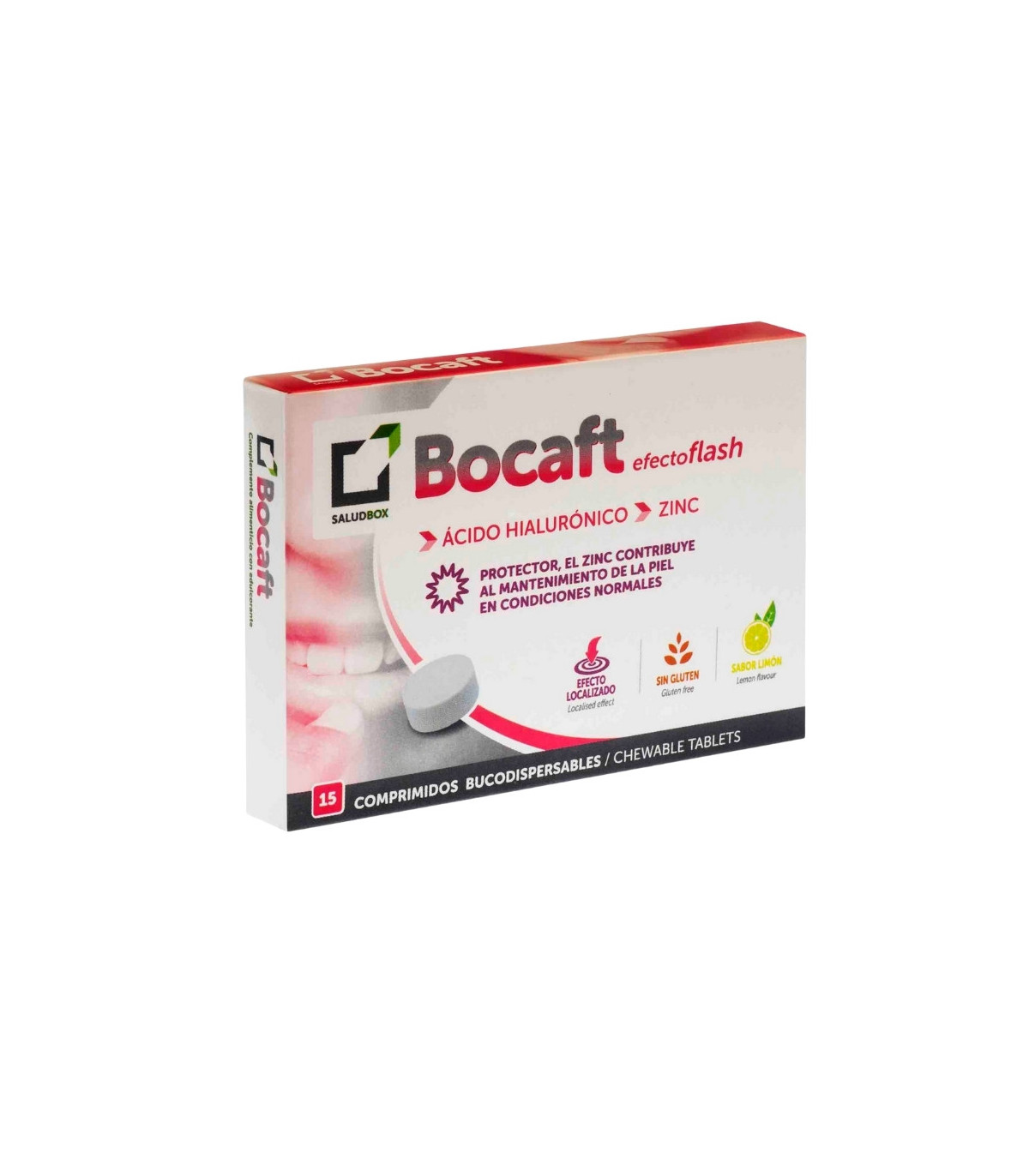 Bocaft SaludBox 15 comprimidos masticables alivia rápidamente aftas, heridas y llagas bucales, favoreciendo la cicatrización y reduciendo el dolor.
