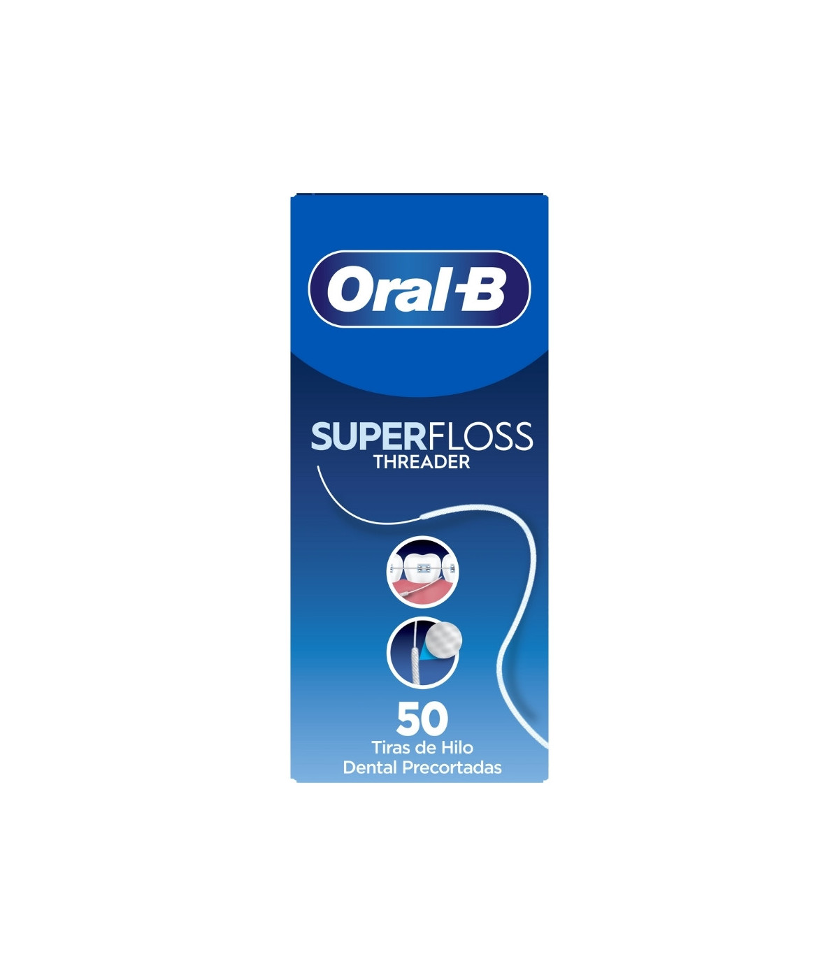 Oral-B Super Floss es una seda dental especialmente diseñada para limpiar eficazmente bajo puentes, alrededor de aparatos y entre dientes con espacios amplios.