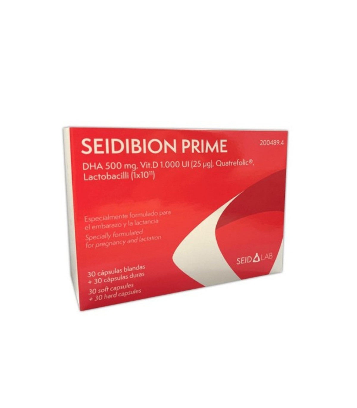 Seidibion Prime es un complemento alimenticio para embarazo y lactancia que aporta vitaminas, minerales, DHA y ácido fólico para cuidar la salud de la madre y el desarrollo del bebé.