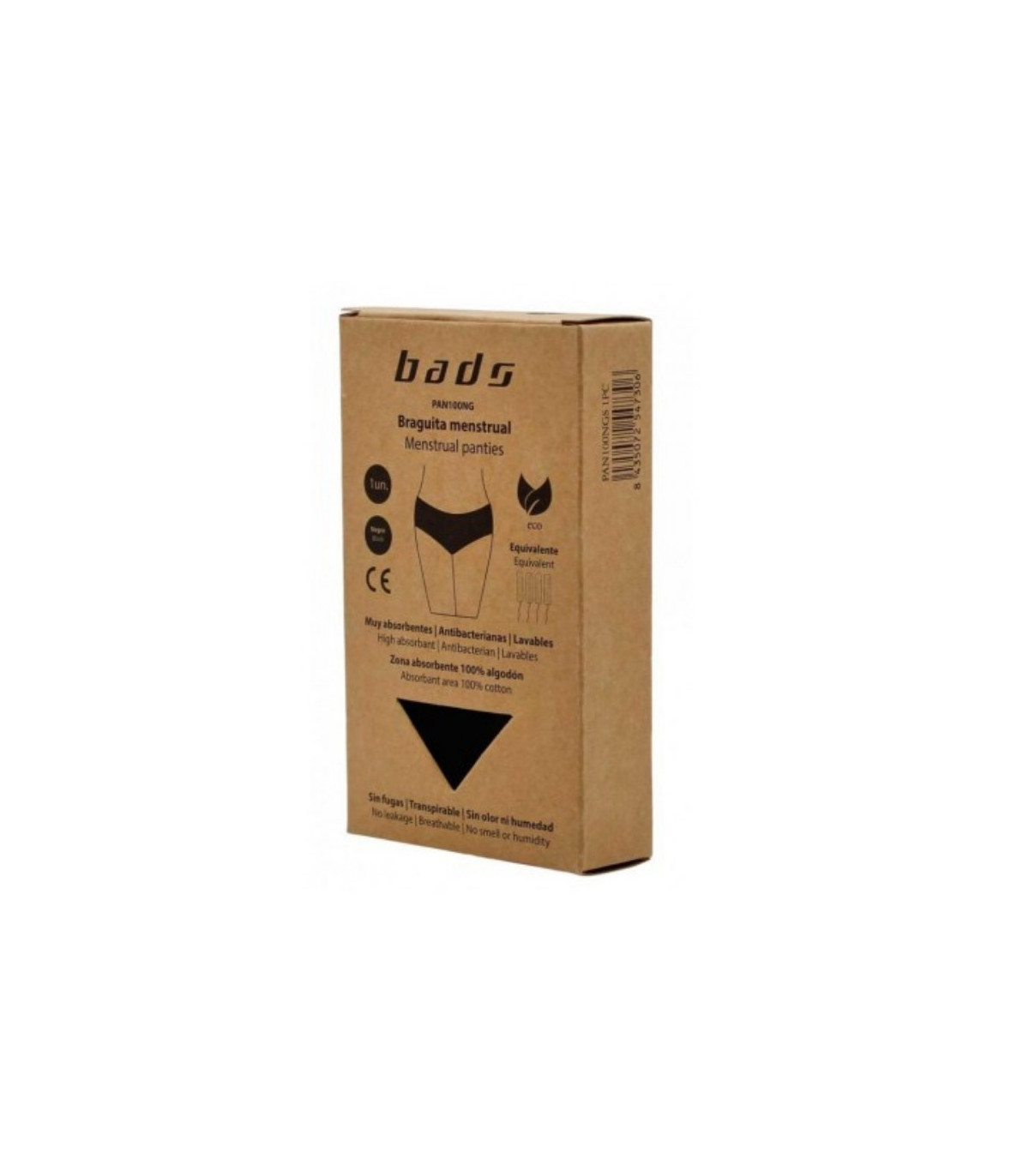 Bragas menstruales reutilizables talla S con triple capa absorbente (≈ 10 ml, equivalente a 2 tampones), forro 100 % algodón, membrana TPU anti-fugas y tratamiento antiolor, para protección cómoda y discreta.
