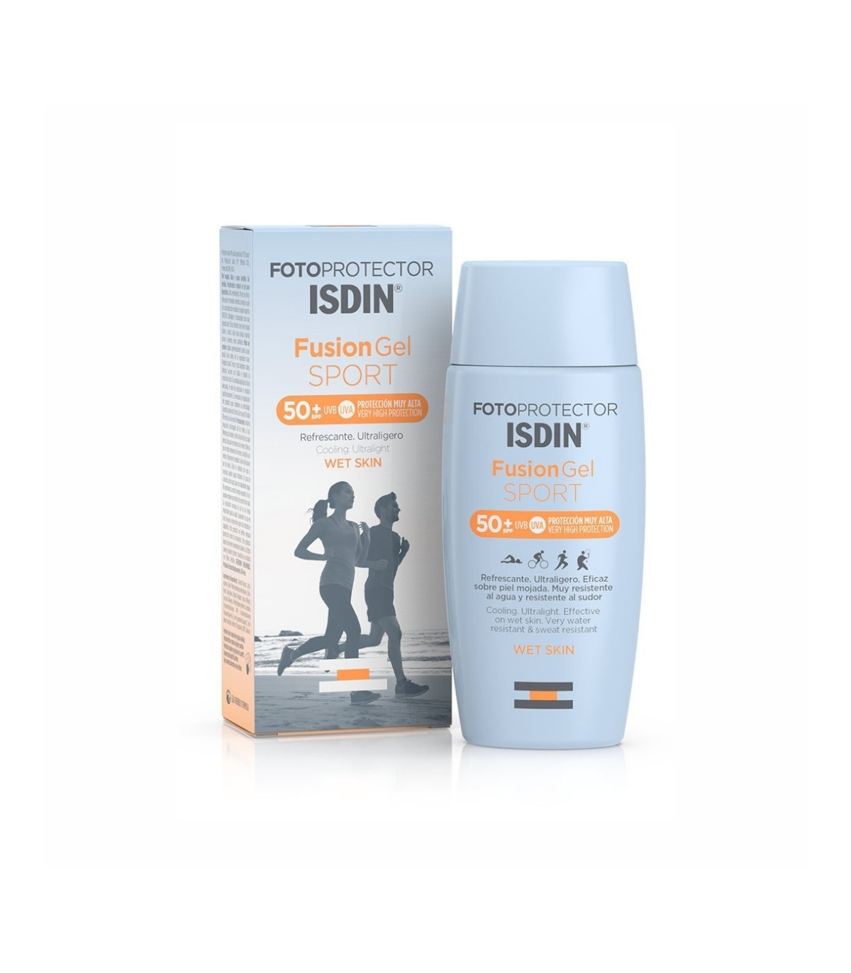 Fotoprotección corporal ultraligera en gel. SPF 50, efecto refrescante y resistente al agua y al sudor. Perfecto para deporte.