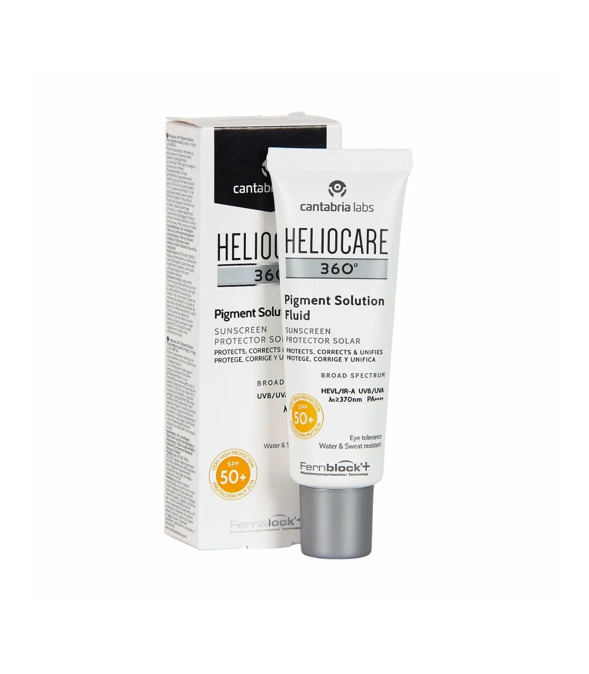 Heliocare 360 Pigment Solution Fluid SPF 50+ es un protector solar facial ultraligero diseñado para prevenir y corregir manchas pigmentarias gracias a su acción despigmentante. Ofrece protección muy alta frente a UVB, UVA, luz visible e infrarrojo con su avanzada tecnología Fernblock+ y filtros de amplio espectro.