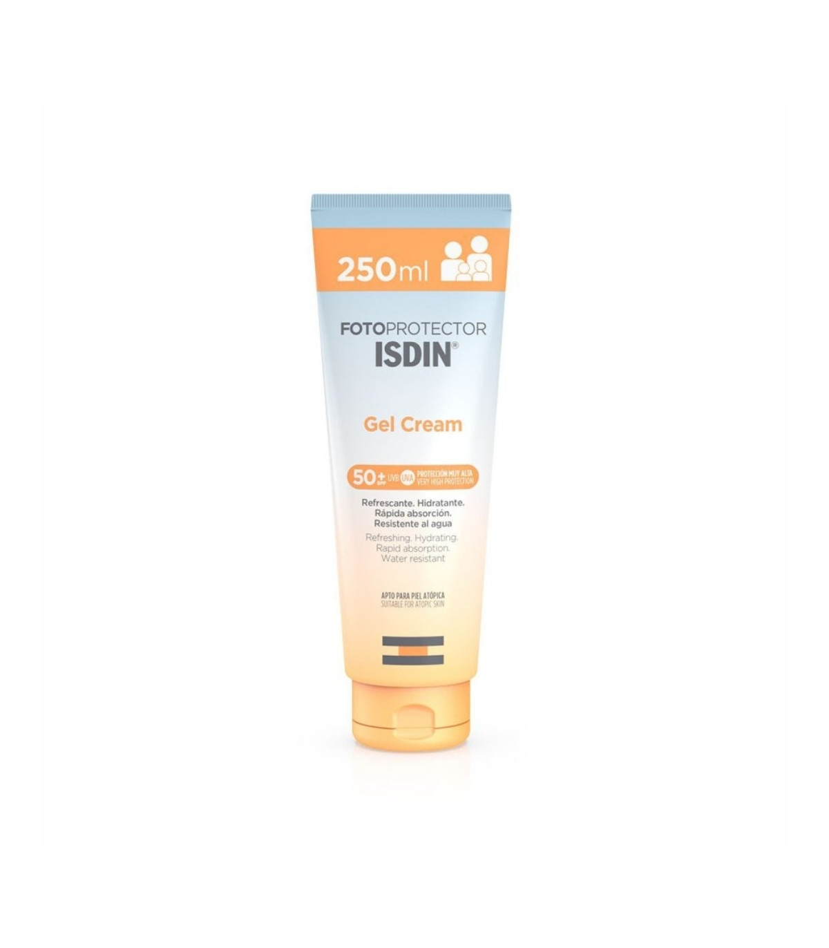 Protector solar corporal con textura gel-crema. Alta protección SPF 50, fórmula ultraligera y resistente al agua.