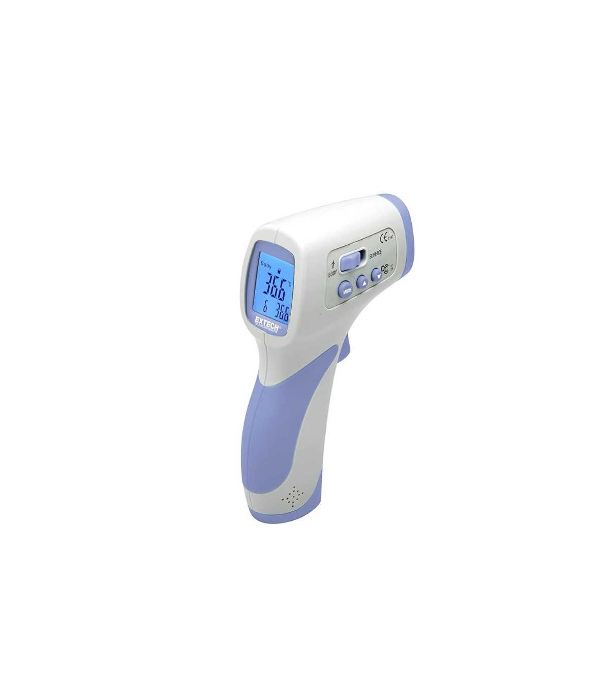Termómetro infrarrojo sin contacto: mide la temperatura corporal en segundos sin tocar la piel. Seguro, rápido y apto para toda la familia.
