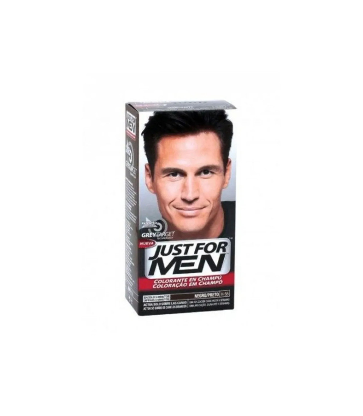 Coloración Just For Men Negro P-404. Cubre las canas rápidamente con un tono negro natural. Fórmula sin amoníaco, enriquecida y de fácil aplicación.